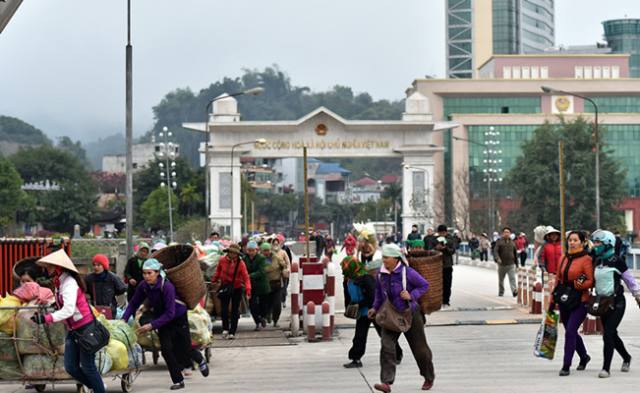 2015年2月5日,越南邊民進入中國河口開展邊境貿易。