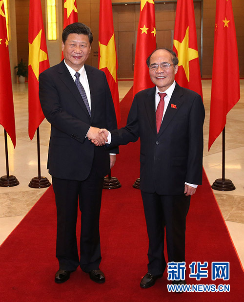 新華網河內11月6日電(記者王豐豐 李忠發)6日,中共中央總書記、國家主席習近平在河內會見越南國會主席阮生雄。