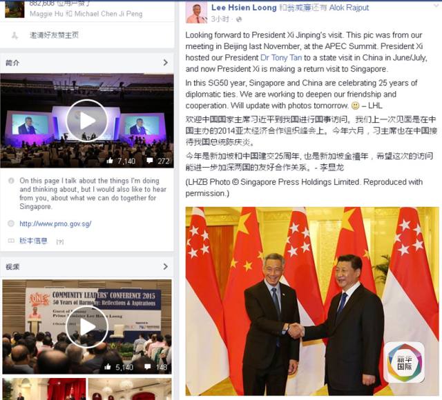 李顯龍還上傳了一張與習(xí)主席握手的照片,并解釋道,該照片攝于在中國舉行的2014年亞太經(jīng)濟(jì)合作組織領(lǐng)導(dǎo)人非正式會議。
