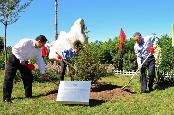 2012年9月4日,新加坡總理李顯龍(右一)在中新天津生態城永定洲文化主題公園與中方共同植下一株象征合作與友誼的云杉樹。 當日,正在對中國進行正式訪問的新加坡總理李顯龍來到天津參觀訪問。 新華社記者張超群攝