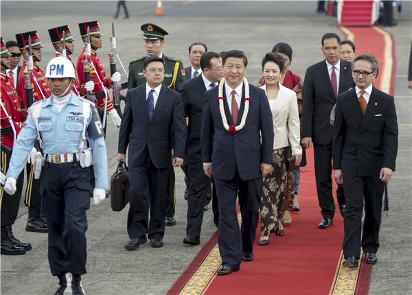 圖為2013年10月2日,習近平抵達雅加達開始對印度尼西亞進行國事訪問。(馬占成攝)