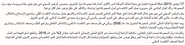 昨日,二十國集團領導人第十次峰會在土耳其安塔利亞閉幕。中國領導人習近平期間出席了峰會,并發表題為《創新增長路徑 共享發展成果》的重要講話,其中強調二十國集團要加強宏觀經濟政策溝通和協調,推動改革創新,構建開放型世界經濟。