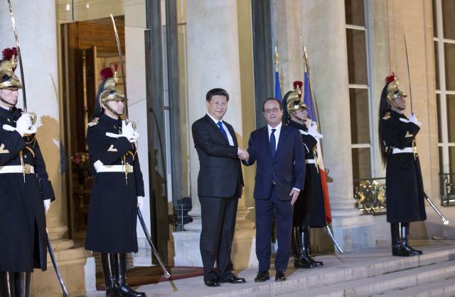 習主席29日下午抵達巴黎時,受到法方熱情接待。奧朗德總統作為東道國領導人,面對千頭萬緒的工作,仍專門安排時間,與習主席單獨會見并共進晚餐。可要知道,法方所面對的是150多位各國元首和政府首腦,奧朗德單獨同習主席共進晚餐,重視程度可見一斑。