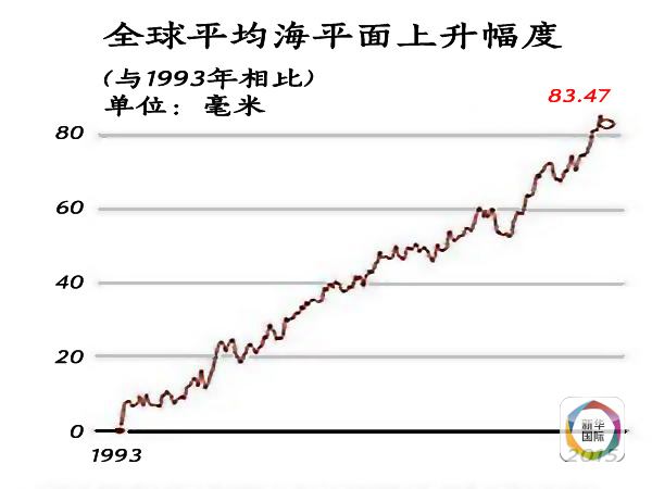 美國國家航空航天局戈達德航天中心利用激光技術監測海平面上升狀況,發現全球海平面比1993年平均升高超過83毫米。一些科學家預計,到本世紀末,海平面還將上升2至4英尺(約0.6至1.2米)。