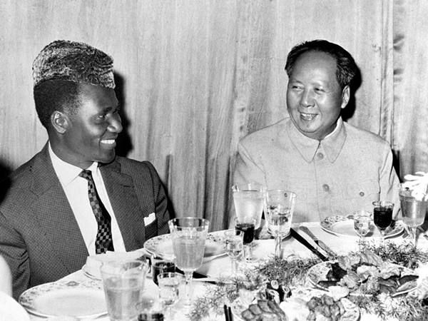 圖為1960年9月12日晚,中共中央主席毛澤東設宴招待幾內亞共和國總統塞古·杜爾。