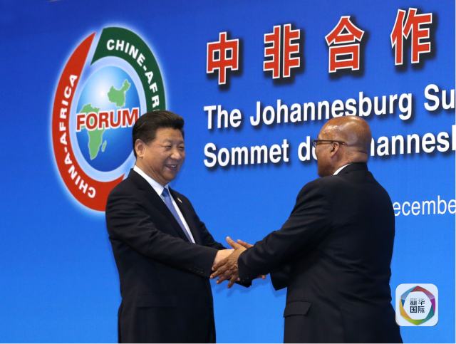 12月4日,國家主席習近平出席中非合作論壇約翰內斯堡峰會開幕式并發表致辭。這是南非總統祖馬迎接習近平。(新華社記者龐興雷攝)