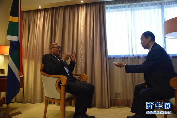 12月6日,南非總統祖馬(左)在南非約翰內斯堡接受新華社記者專訪。 “我們非常感謝中國理解非洲的困難和面臨的挑戰,感謝中國領導人和中國人民與我們一起并肩面對。習近平主席在峰會上的講話告訴全世界:中國是我們真正的朋友和伙伴,”南非總統祖馬6日在接受新華社專訪時說。新華社記者趙熙攝