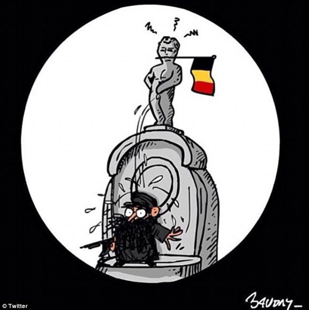 眾所周知,“撒尿小童”(Manneken Pis)是布魯塞爾廣場的標(biāo)志性建筑,也是游客必游的景點(diǎn)。有網(wǎng)友就借此制作漫畫,展示對恐怖主義的藐視。