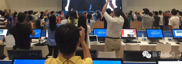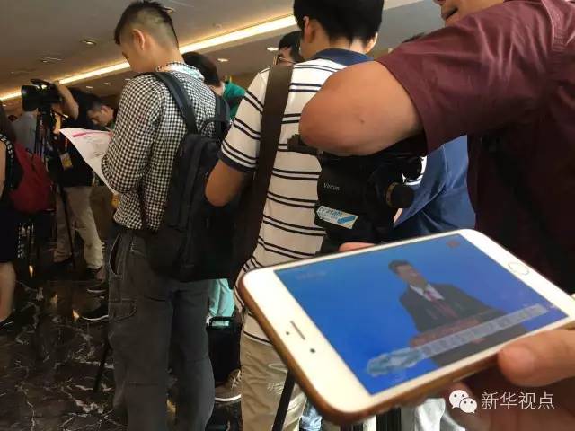 由于峰會(huì)現(xiàn)場(chǎng)場(chǎng)地有限,許多記者無法到會(huì)場(chǎng)實(shí)地進(jìn)行采訪報(bào)道。不愿錯(cuò)過精彩瞬間的他們架起“長(zhǎng)槍短炮”,對(duì)準(zhǔn)新聞中心內(nèi)正在直播開幕式實(shí)況的大屏幕。