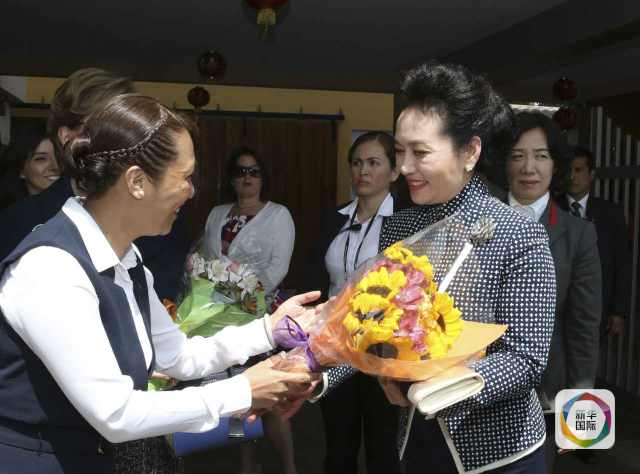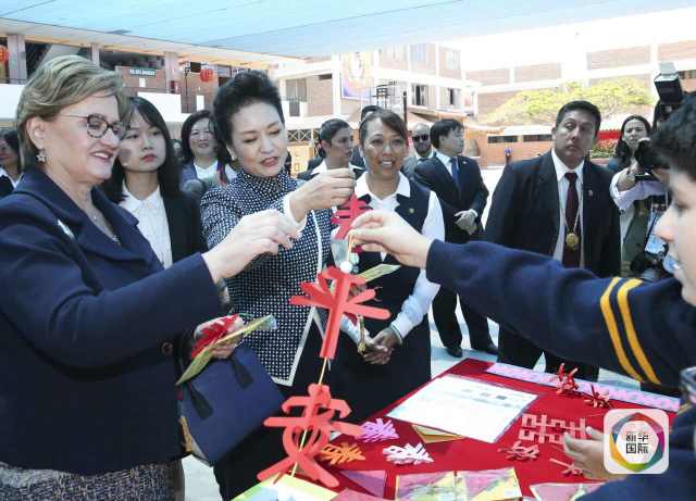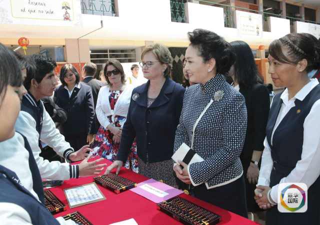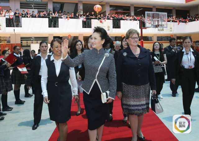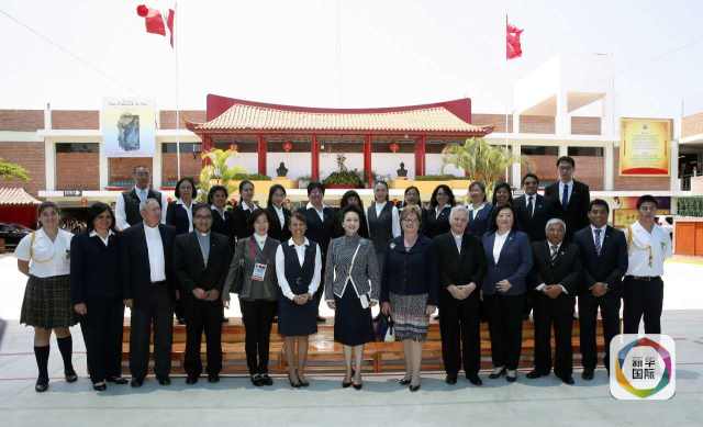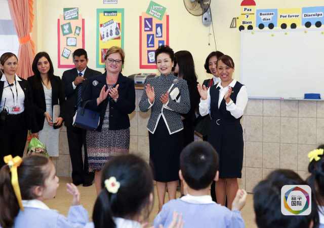 ??? 彭麗媛抵達(dá)時(shí),秘魯總統(tǒng)夫人蘭格和學(xué)校校長在下車處迎接,校長為彭麗媛獻(xiàn)上鮮花。若望二十三世秘中學(xué)校創(chuàng)辦于1962年,是從幼兒園到中學(xué)教育的全日制學(xué)校,也是秘魯乃至南美洲最具影響的華文學(xué)校之一。