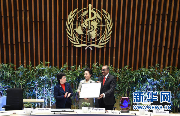 彭麗媛出席世界衛生組織結核病和艾滋病防治親善大使任期續延暨頒獎儀式