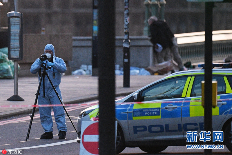 當地時間2017年3月22日,英國倫敦,英國威斯敏斯特議會大廈附近發生襲擊事件,威斯敏斯特橋上有車輛沖撞行人;另外有持刀歹徒攻擊議會大廈執勤警察后被擊斃,報道稱多人受傷。襲擊發生后,議會大廈臨時關閉,英國議會下院的會議暫停。倫敦警方目前暫時將此事作為恐怖事件處理。據外媒報道,英國警方封閉了倫敦議會大廈周邊的街道。圖片來源:東方IC