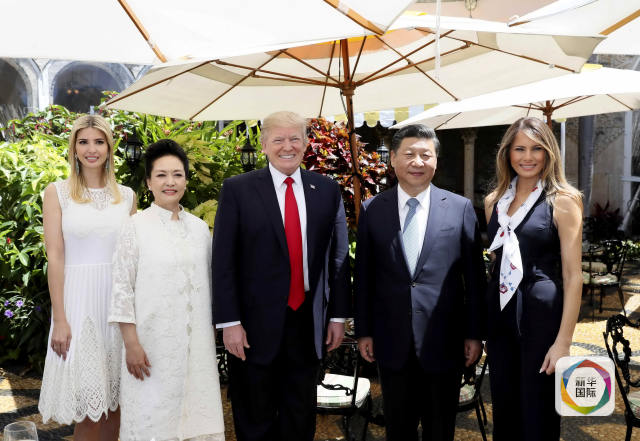 當(dāng)?shù)貢r(shí)間4月7日,國(guó)家主席習(xí)近平在美國(guó)佛羅里達(dá)州海湖莊園同美國(guó)總統(tǒng)特朗普舉行中美元首第二場(chǎng)正式會(huì)晤。這是習(xí)近平和夫人彭麗媛同特朗普和夫人梅拉尼婭、女兒伊萬(wàn)卡在莊園內(nèi)合影。(新華社記者蘭紅光攝)