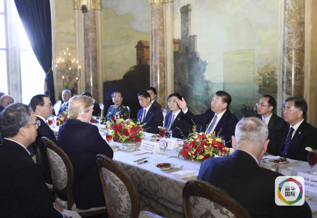 當地時間4月7日,國家主席習近平在美國佛羅里達州海湖莊園同美國總統特朗普舉行中美元首第二場正式會晤。這是習近平出席特朗普舉行的工作午宴。(新華社記者蘭紅光攝)
