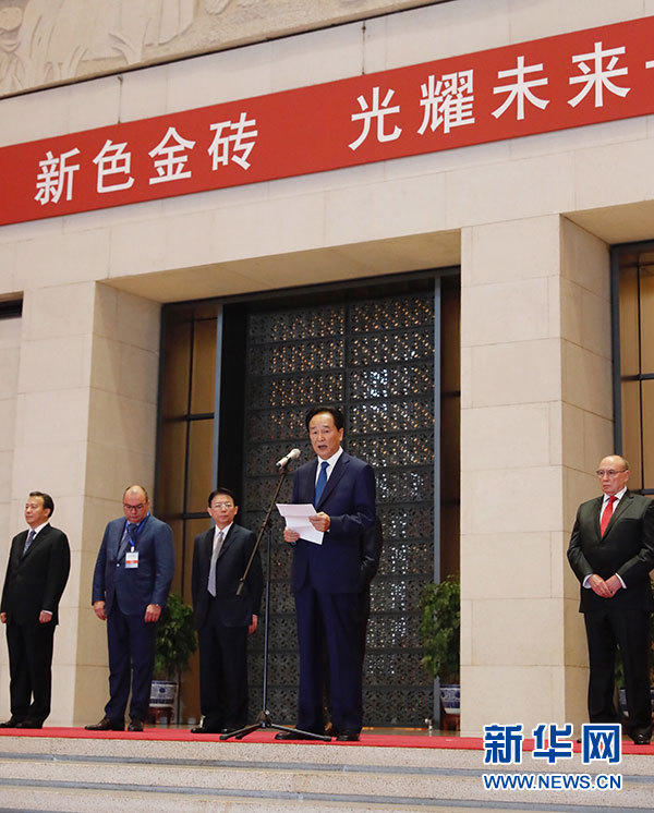 6月7日,金磚國家媒體聯(lián)合攝影展在北京中國國家博物館開幕,由金磚五國主流媒體共同提供的170余幅圖片與公眾見面,全面展示了金磚國家合作的豐碩成果。這是新華社社長蔡名照在攝影展開幕式上致辭。新華社記者 沈伯韓 攝
