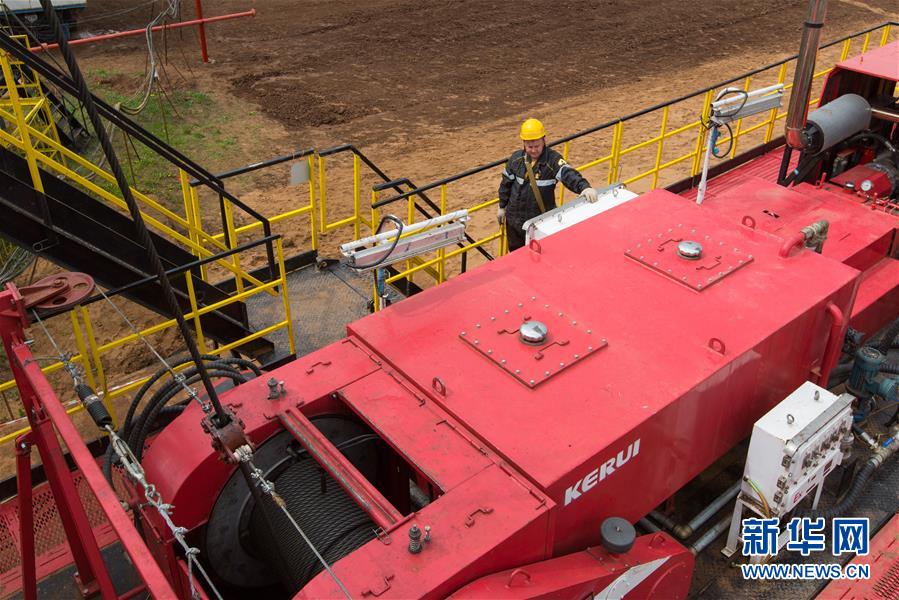 6月2日,在俄羅斯伊熱夫斯克,工人在UDM項目鉆井現場作業。新華社記者白雪騏攝