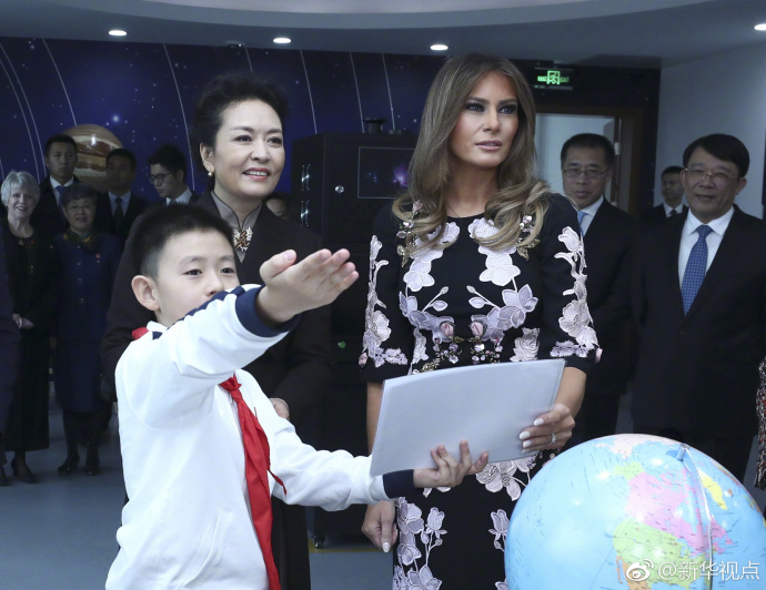 彭麗媛和梅拉尼婭在古建筑教室。(記者白潔、鞠鵬)(據新華社“新華視點”微博報道)