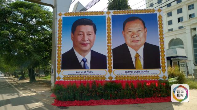在老撾國家主席府正門,懸掛著習近平主席和老撾國家主席本揚的大幅畫像。乘車路過的老撾青年人朝在主席府外采訪的中國記者熱情打著招呼,歡笑聲灑了一路。