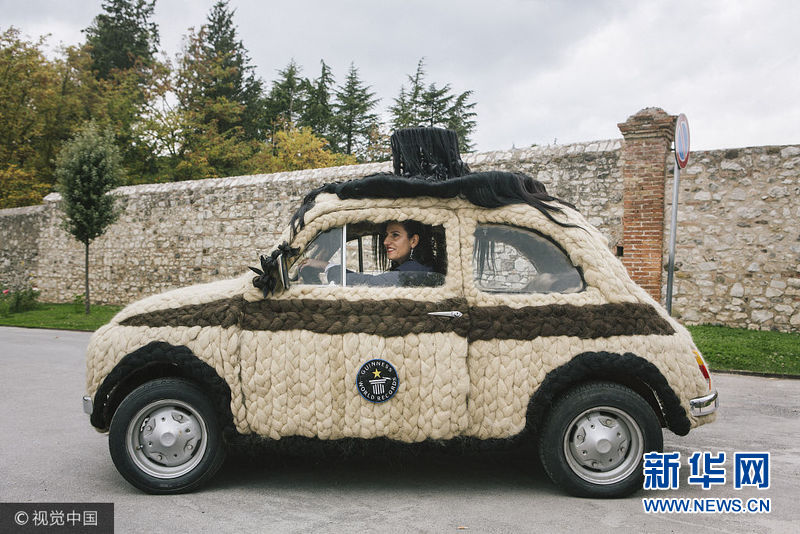 意大利帕杜拉,一位意大利發(fā)型設計師Maria Lucia Mugno花費了超過8萬英鎊來裝飾自己的車子,這讓她獲得了吉尼斯世界紀錄。這項工程需要150個小時來完成,用于裝飾的頭發(fā)總重量達到100公斤。(圖片來源:視覺中國)