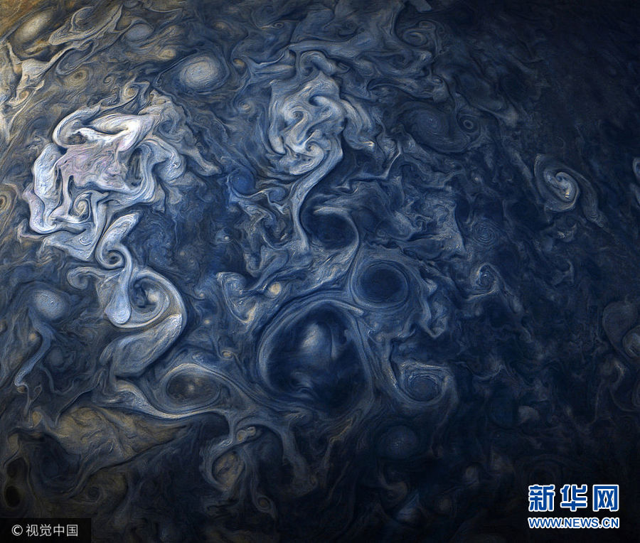 12月21日訊(具體拍攝時間不詳),這一系列由木星探測器“朱諾”號帶來的高清圖,錯綜復(fù)雜的星云結(jié)構(gòu)看上去就像印象派大師的畫作。(圖片來源:視覺中國)