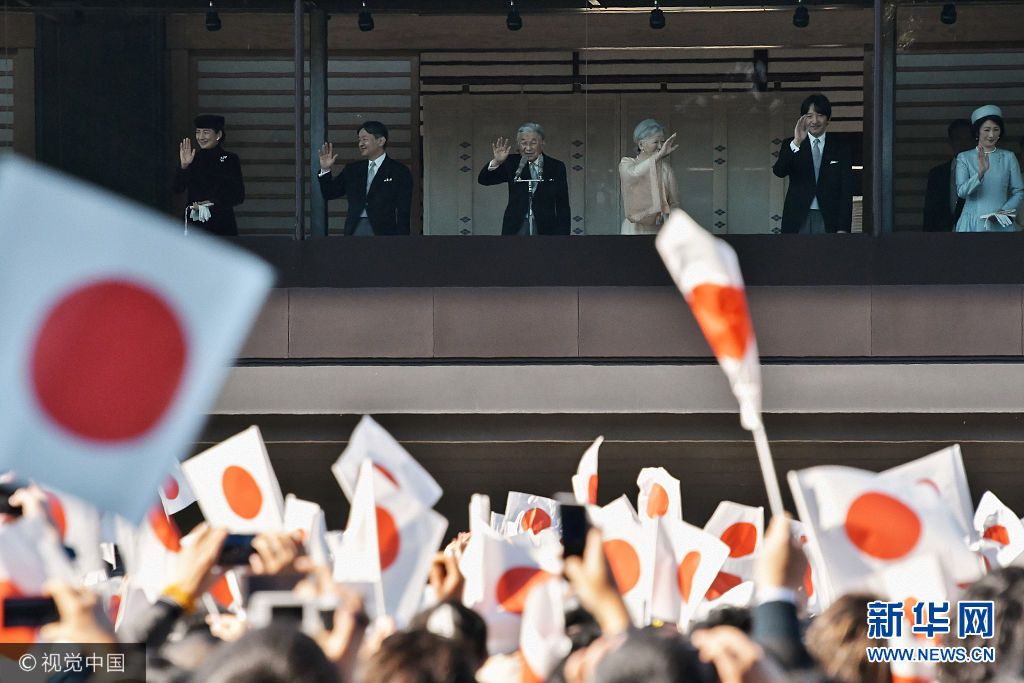當地時間2017年12月23日,日本東京,日本明仁天皇慶祝84歲生日,在皇宮的陽臺上向祝福者揮手致意。(圖片來源:視覺中國)