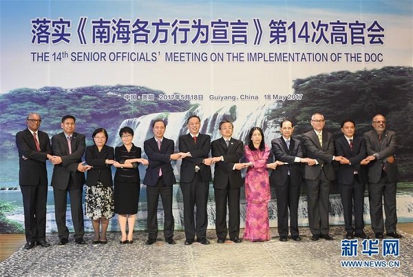 5月18日,與會代表在出席落實《南海各方行為宣言》第14次高官會前合影留念。5月17日至18日,中國與東盟國家在貴州省貴陽市舉行落實《南海各方行為宣言》第14次高官會和第21次聯合工作組會。新華社記者 劉續攝