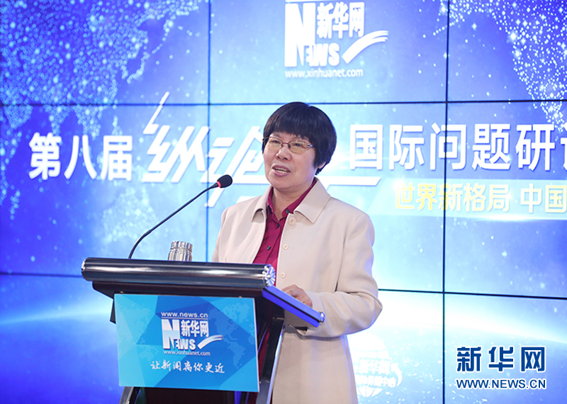 12月26日,新華網第八屆“縱論天下”國際問題研討會成功舉行。圖為中國現代國際關系研究院研究員陳鳳英在主旨演講。新華網發(郭小天攝)
