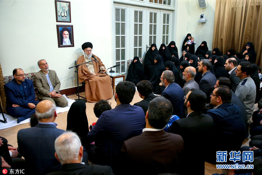 1月2日,伊朗德黑蘭,伊朗最高領(lǐng)袖哈梅內(nèi)伊?xí)娨晾恃车勒呒胰耍⒃跁嫔习l(fā)表講話。據(jù)媒體報(bào)道,哈梅內(nèi)伊稱國內(nèi)爆發(fā)的抗議活動是由外國勢力操控。他表示:“近日,伊朗的敵人向這些鬧事者們提供著金錢、武器和政治的支持,以讓他們來傷害伊朗”。(圖片來源:東方IC)
