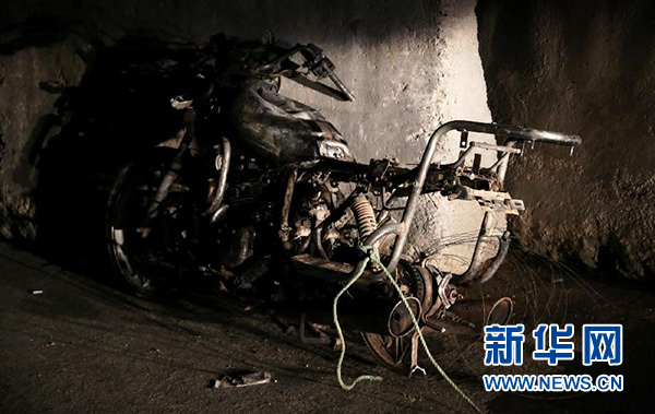 這是1月4日在阿富汗首都喀布爾爆炸現場拍攝的一輛受損的摩托車。新華社發(賈韋德·奧米德攝)
