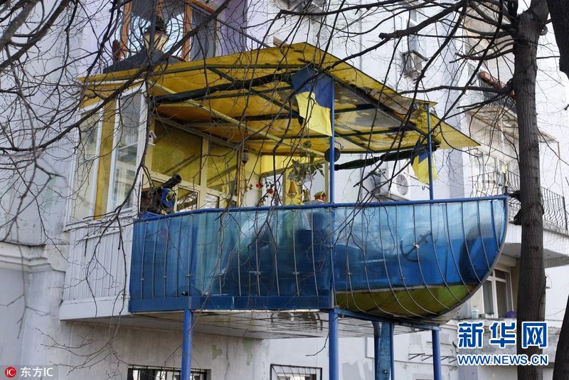 【帥!軍艦陽臺】2017年3月30日,烏克蘭基輔,72歲的老人Olexander Shkolnik曾是一名海軍少校。退役后,老人將自家陽臺打造成了軍艦?zāi)樱约o念自己的海軍生涯。