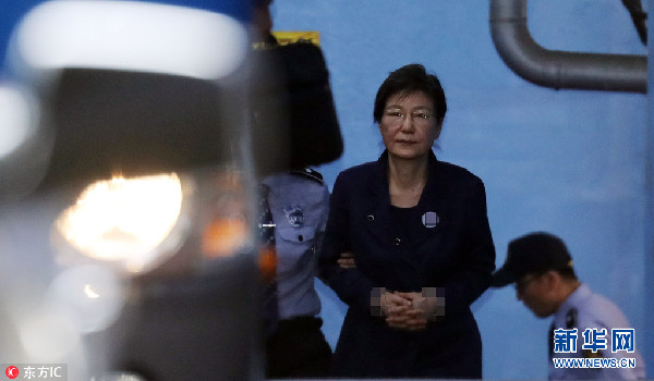 當(dāng)?shù)貢r(shí)間2017年10月16日,韓國首爾,韓國前總統(tǒng)樸槿惠在公審后戴著眼鏡離開法庭。