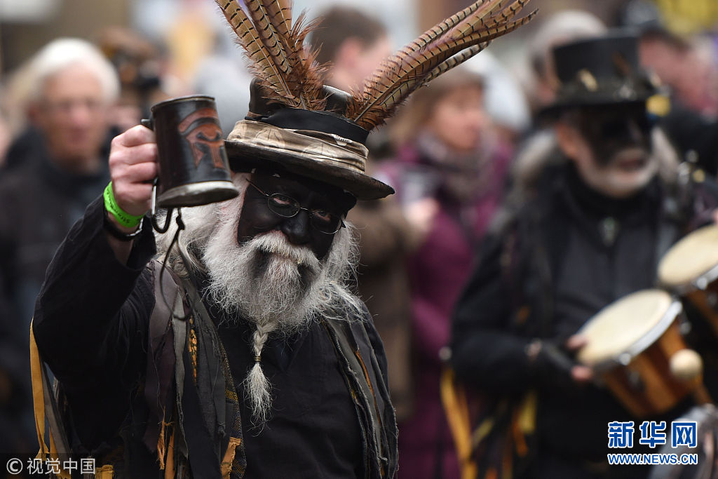 英國小鎮慶祝“稻草熊”節 民眾跟隨草人盡情舞動