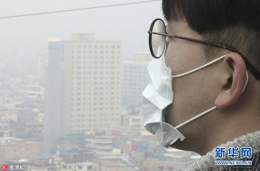 1月16日,韓國清州市,當天早晨,清州市污染指數爆表,城市籠罩在霧霾之下。(圖片來源:東方IC)