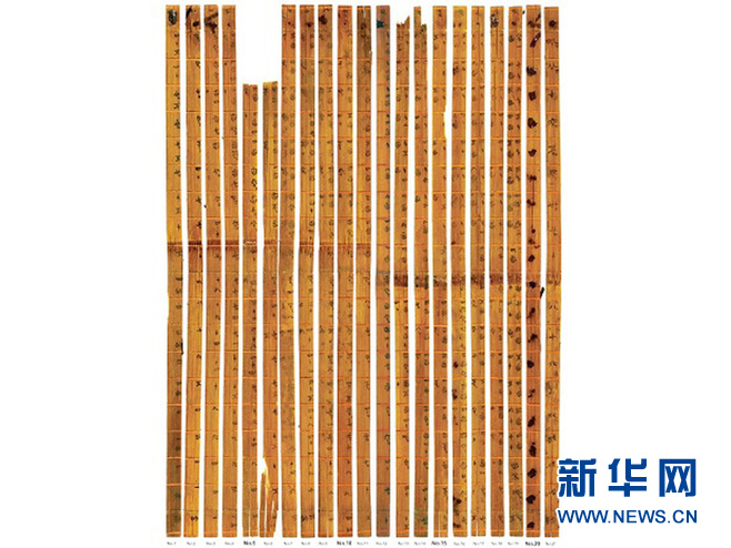 資料圖片:清華大學收藏的戰國竹簡《算表》,經認證為“最早的十進制乘法表”。(吉尼斯世界紀錄供圖)