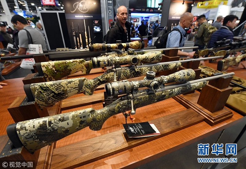 當地時間2018年1月23日,美國拉斯維加斯,美國全國射擊運動基金會(NSSF)舉辦槍支展銷會。(圖片來源:視覺中國)