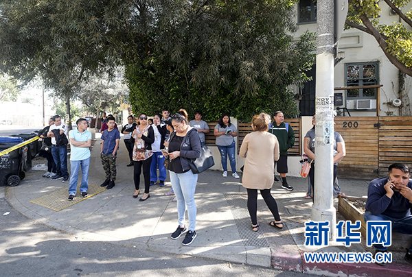 2月1日,在美國洛杉磯,家長在發生槍擊事件的薩爾瓦多·卡斯特羅中學外等候。新華社發(趙漢榮攝)