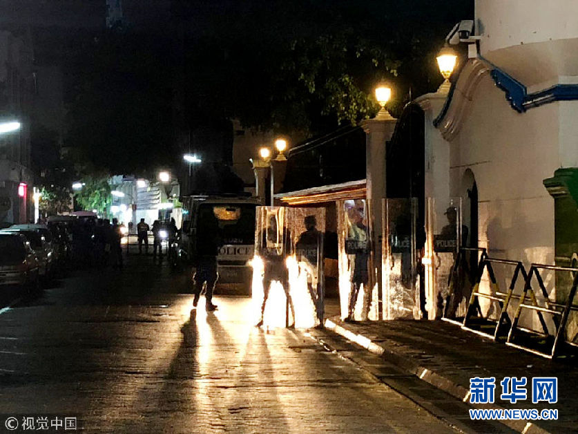 當地時間2月5日,馬爾代夫馬累,安全部隊駐守在最高法院外。馬爾代夫法律事務部長沙庫爾5日晚通過國家電視臺宣布,馬爾代夫總統亞明已正式發布命令,從當天開始全國實行為期15天的緊急狀態。(圖片來源:視覺中國)
