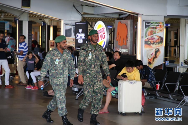 2月7日,軍人在馬爾代夫馬累國際機場巡邏。新華社記者 朱瑞卿 攝