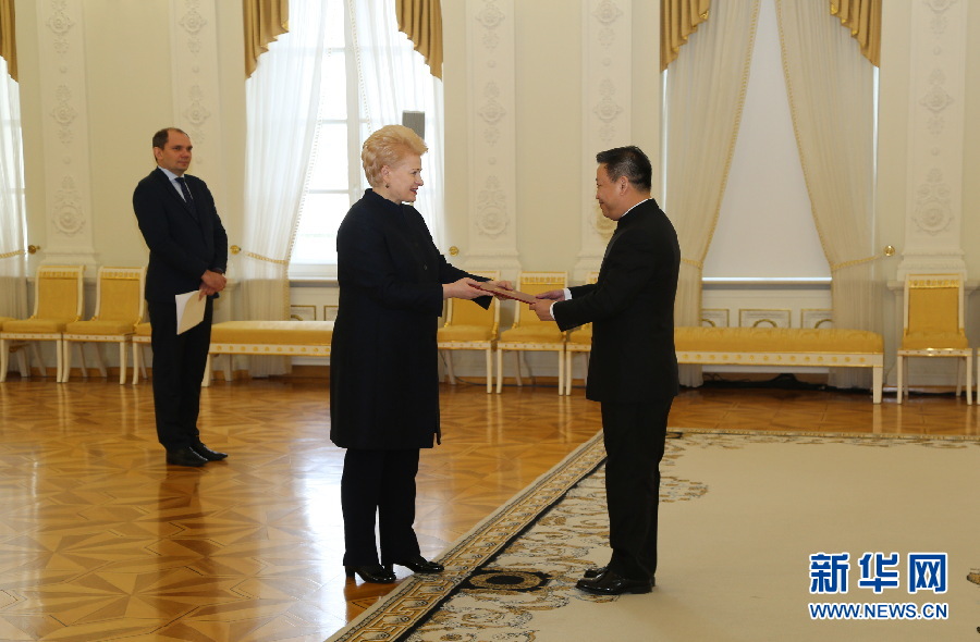 2月26日,在立陶宛首都維爾紐斯,中國駐立陶宛大使申知非向立陶宛總統(tǒng)格里包斯凱特遞交國書。新華網發(fā) 郭明芳攝