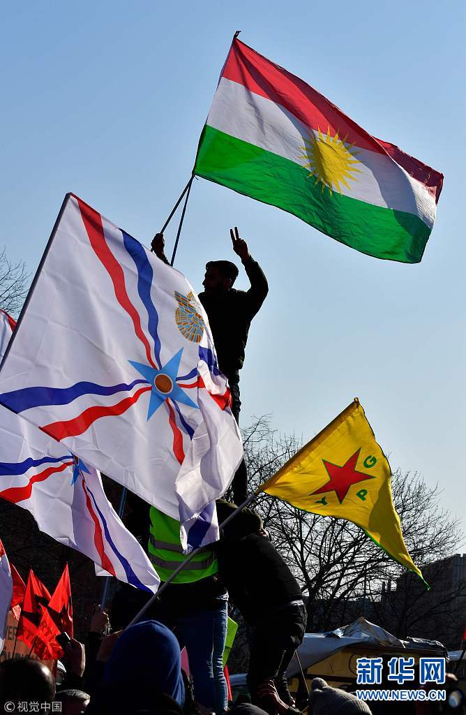 當地時間2018年3月3日,德國柏林,當地民眾舉行游行,抗議土耳其對敘利亞阿夫林地區的庫爾德人采取軍事行動。(圖片來源:視覺中國)