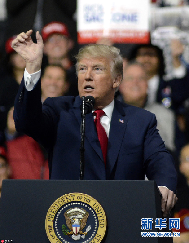 特朗普為共和黨聯邦議員競選站臺演講 表情包滿天飛