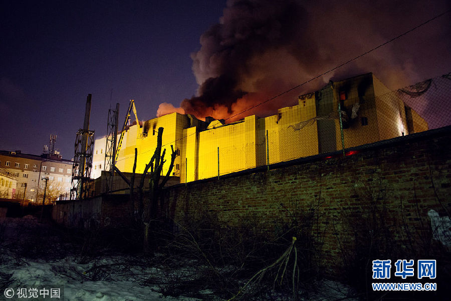 當?shù)貢r間2018年3月25日,俄羅斯西西伯利亞南部城市克麥羅沃一家購物中心發(fā)生重大火災。據(jù)俄緊急情況部26日發(fā)布的消息,大火已造成64人死亡。(圖片來源:視覺中國)