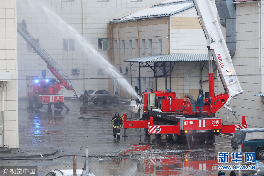 當地時間2018年3月25日,俄羅斯西西伯利亞南部城市克麥羅沃一家購物中心發生重大火災。據俄緊急情況部26日發布的消息,大火已造成64人死亡。(圖片來源:視覺中國)