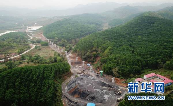這是3月27日在老撾南塔省航拍的正在施工建設中的橋梁。新華網發 劉艾倫攝