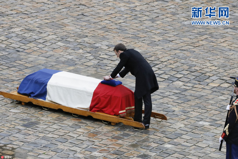 法國為英雄警察舉行國葬 馬克龍偕妻子出席神情嚴肅