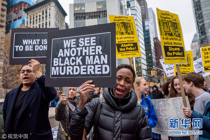 美國紐約舉行百人大游行 抗議加州警方槍殺手無寸鐵黑人男子