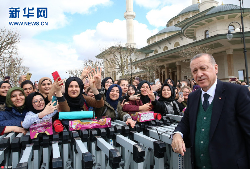 當(dāng)?shù)貢r(shí)間3月30日,土耳其安卡拉,土耳其總統(tǒng)埃爾多安在星期五禮拜結(jié)束后與民眾打招呼。(圖片來(lái)源:東方IC)
