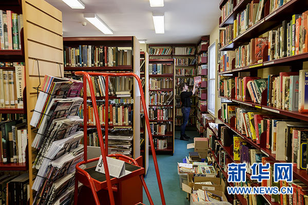 5月4日,在英國倫敦,一名志愿者在馬克思紀念圖書館閱覽室整理書籍。新華社發(蒂姆·愛爾蘭 攝)