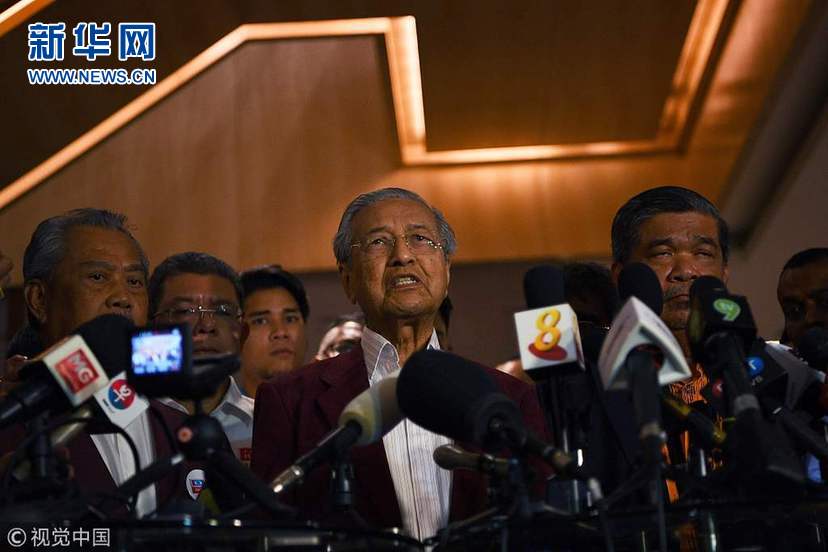當(dāng)?shù)貢r(shí)間2018年5月9日,馬來(lái)西亞吉隆坡,馬哈蒂爾代表希望聯(lián)盟召開(kāi)新聞發(fā)布會(huì)。9日,馬來(lái)西亞國(guó)會(huì)大選結(jié)束。10日凌晨官方點(diǎn)票結(jié)果顯示,前總理馬哈蒂爾(Mahathir)帶領(lǐng)的希望聯(lián)盟取得112席簡(jiǎn)單多數(shù)國(guó)會(huì)議席,足以籌組政府及勝出大選,并終結(jié)執(zhí)政國(guó)民陣線長(zhǎng)達(dá)60年的管治。現(xiàn)總理納吉布領(lǐng)導(dǎo)的國(guó)民陣線僅獲得76席。(圖片來(lái)源:視覺(jué)中國(guó))