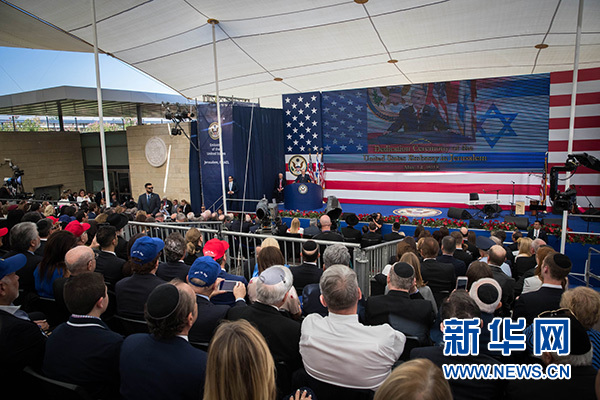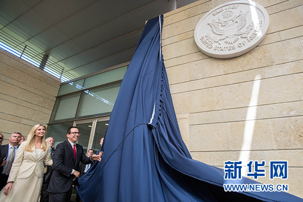 數(shù)百名官員參加了當(dāng)天的美國(guó)新使館開館儀式。美國(guó)副國(guó)務(wù)卿沙利文率領(lǐng)美方代表團(tuán)出席儀式,其中包括美國(guó)總統(tǒng)特朗普的女兒伊萬(wàn)卡和她的丈夫庫(kù)什納,以及美財(cái)政部長(zhǎng)姆努欽。